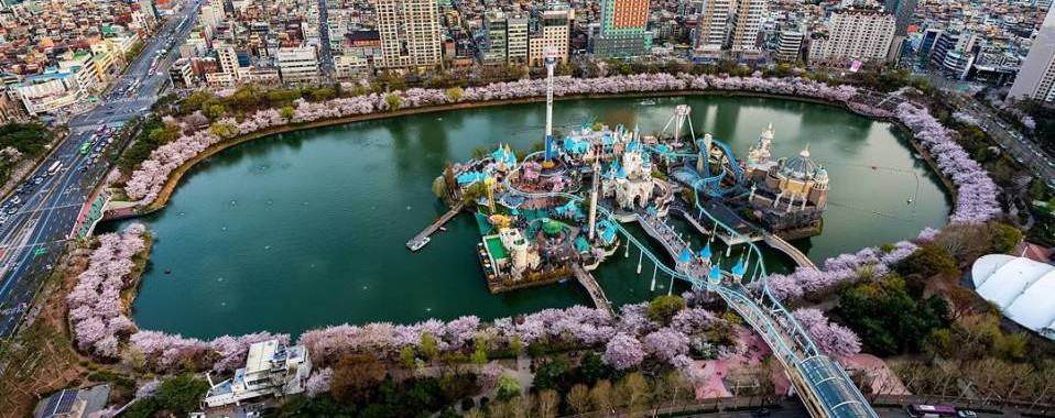 乐天世界的户外游乐场就在石村湖上